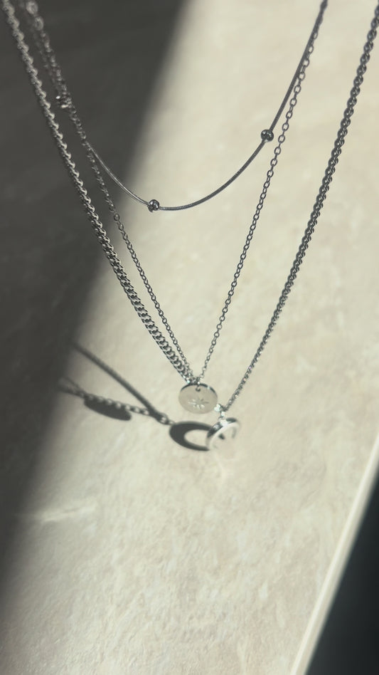 Three Strand Moon Necklace (Silver)